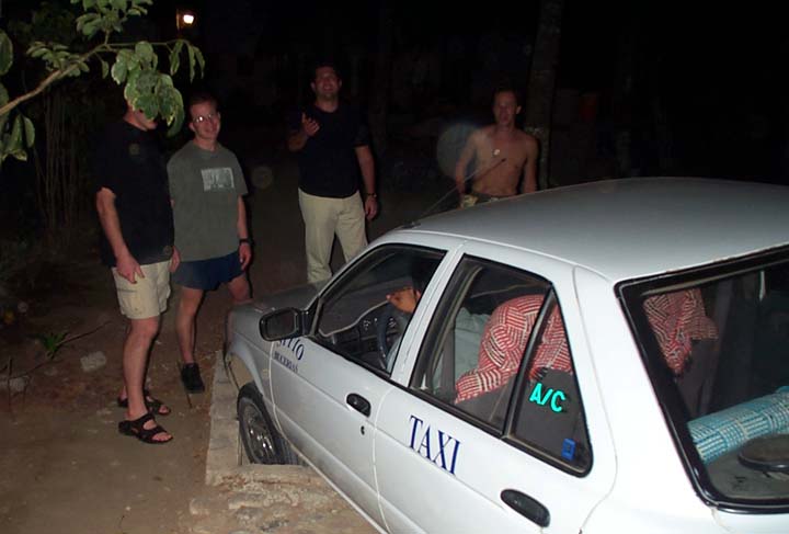 Taxi got stuck in massive hold in driveway. We had to lift it out.